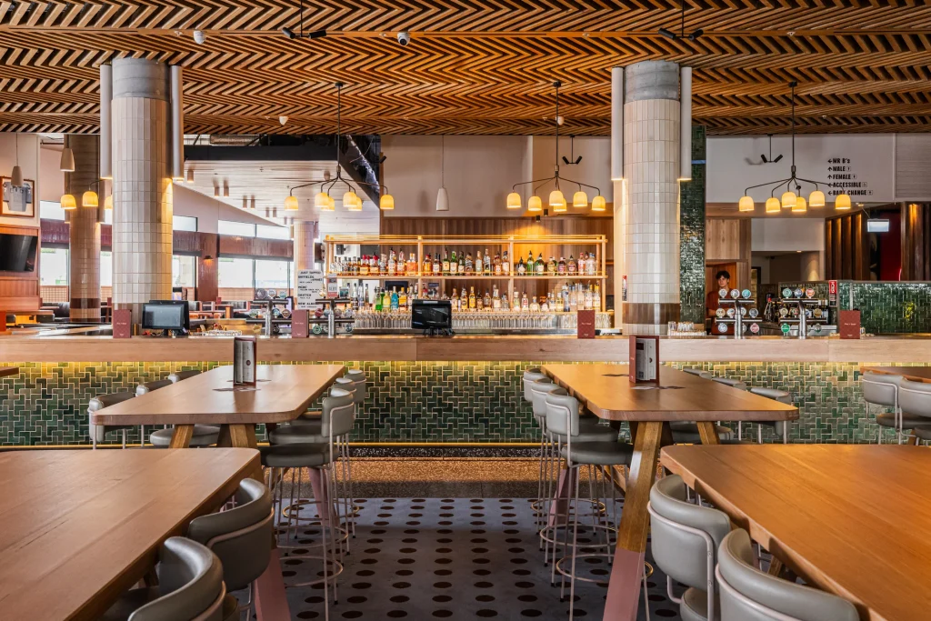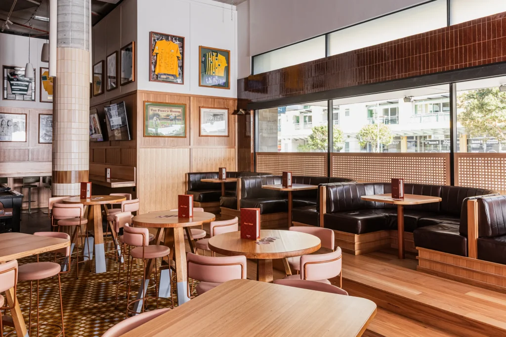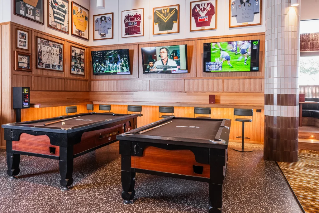 Patrons can watch NRL, UFC and other live sports from booths and high tables, surrounded by memorabilia. The new fit-out positions Mr B’s as the go-to destination for game-day viewing.